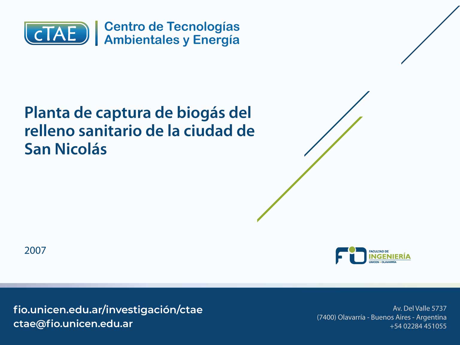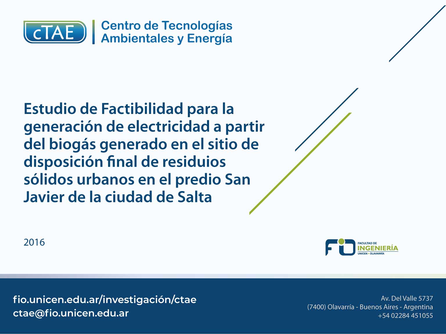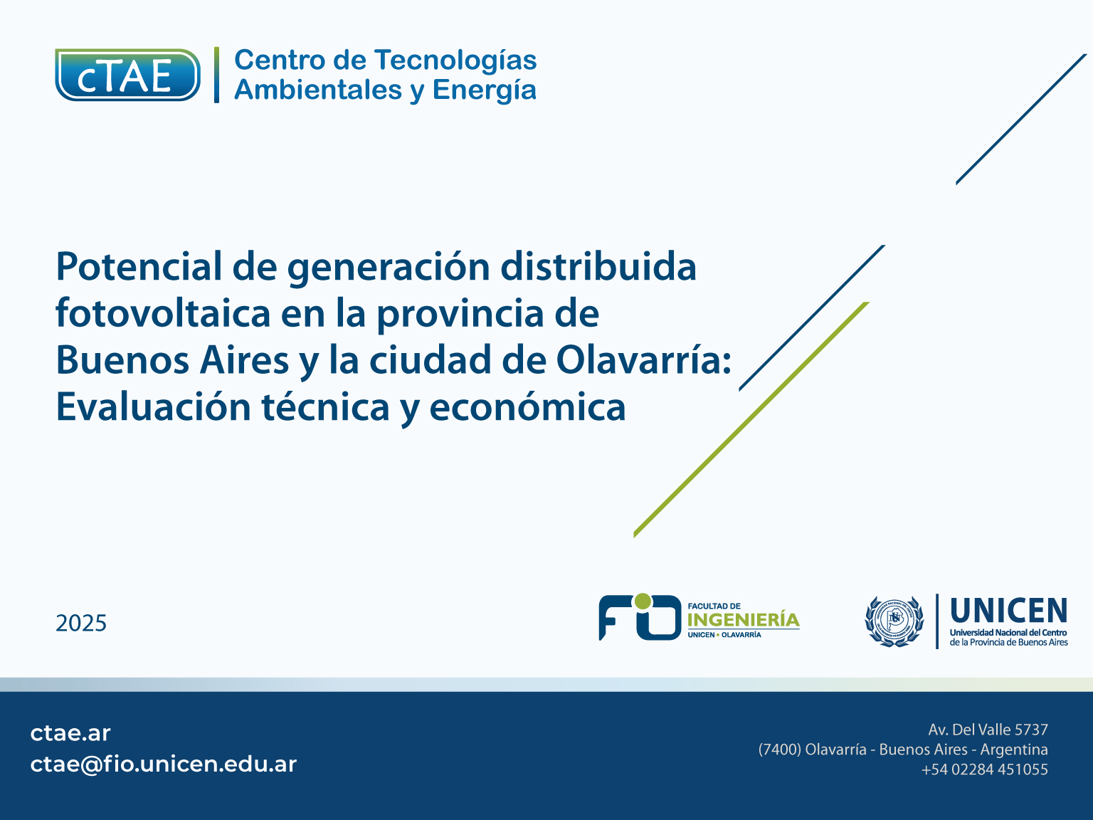El Centro de Tecnologías Ambientales y Energía (cTAE) se creó en el año 2002 en la Facultad de Ingeniería de la UNICEN y, desde entonces, funciona como un espacio de trabajo interdisciplinario. En él participan docentes-investigadores de distintos departamentos de la Facultad de Ingeniería, estudiantes de sus diversas carreras y de otras facultades de la UNICEN, graduados de la universidad y especialistas de otras instituciones y disciplinas, quienes se integran a los múltiples proyectos y actividades que desarrolla el cTAE.